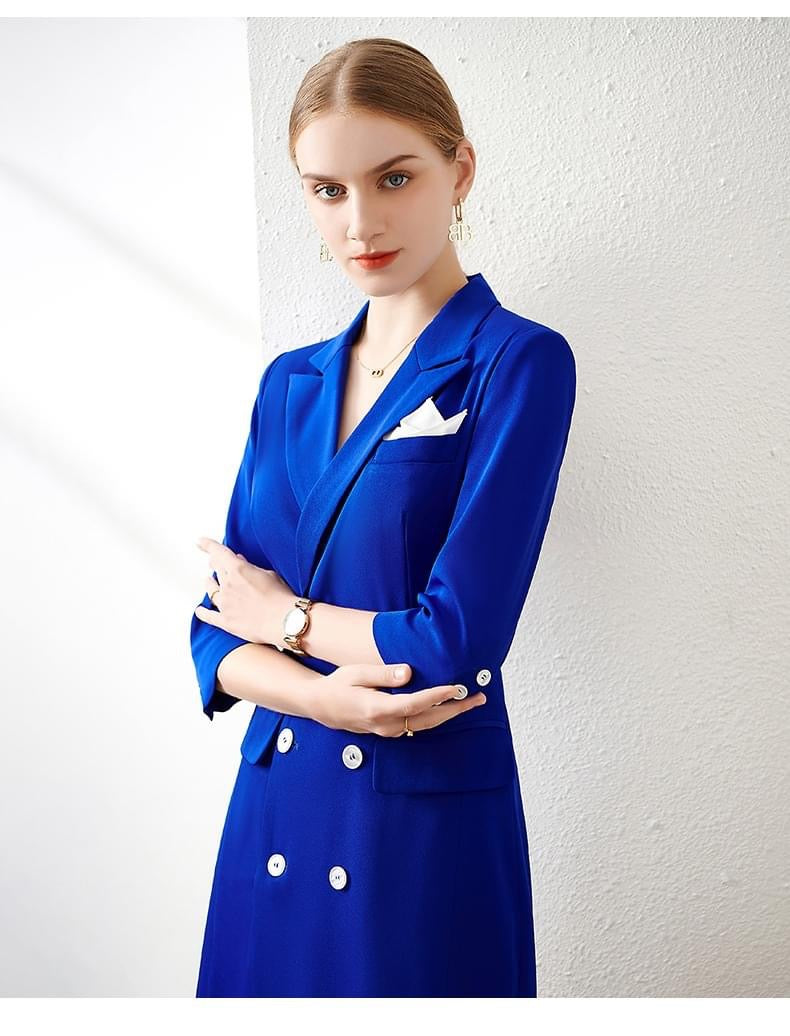 Look and feel best in this elegant Royal Blue Double Breasted Shirt Dress. Crafted from the finest fabrics, this shirt dress will impress with its royal blue hue, stylish button sleeve, and double-breasted detailing. Step out in the ultimate sophistication!